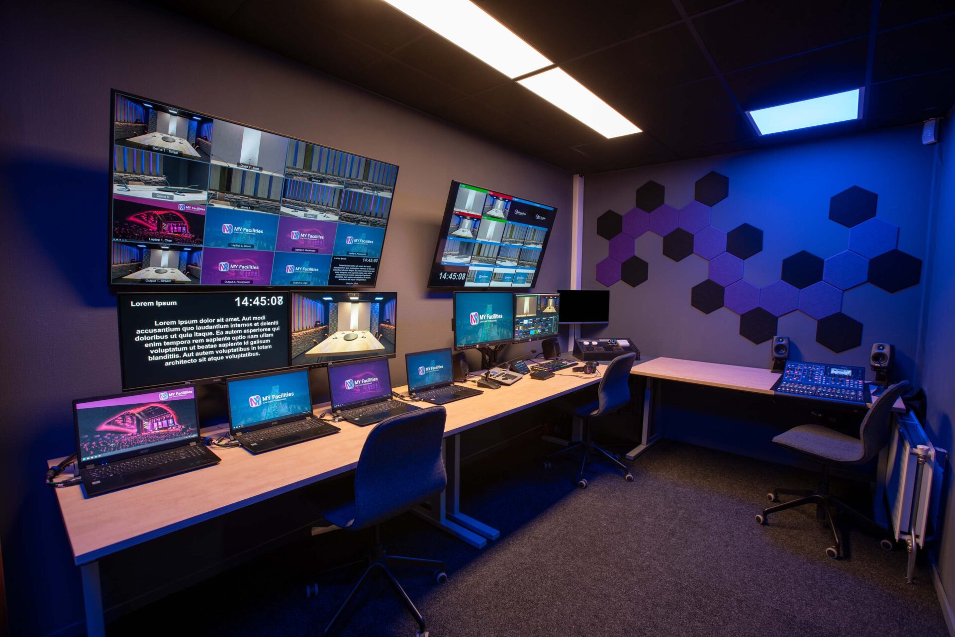 De op afstand bestuurbare camera’s en aparte regieruimte maken het mogelijk om jouw producties op de meest professionele manier vast te leggen. Wij beschikken over de modernste apparatuur en vakbekwame technici om ervoor te zorgen dat jouw visie tot leven komt.